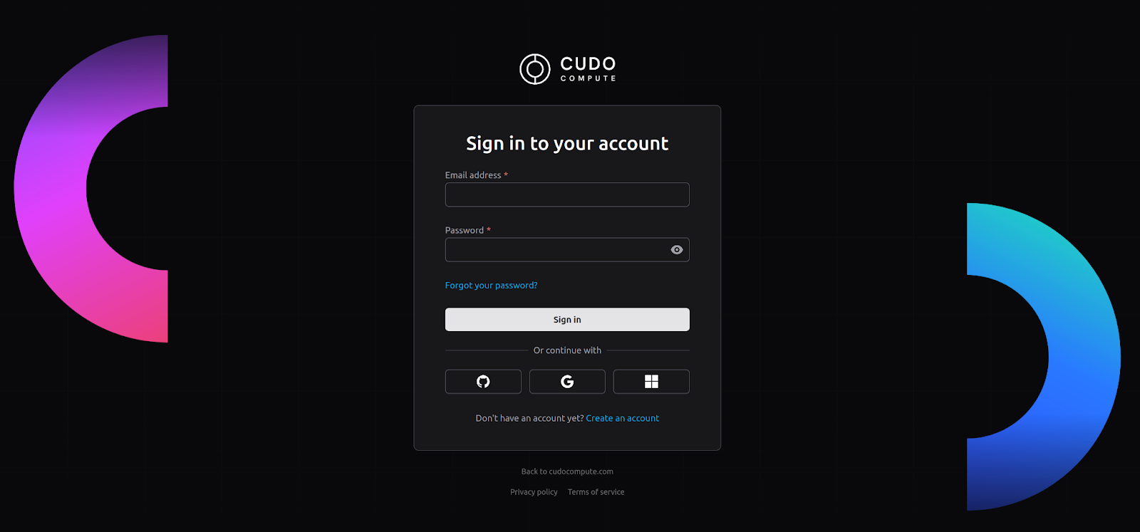 Getting started in your Fetch Compute journey is very easy. Simply visit compute.cudo.org and create an account there.
