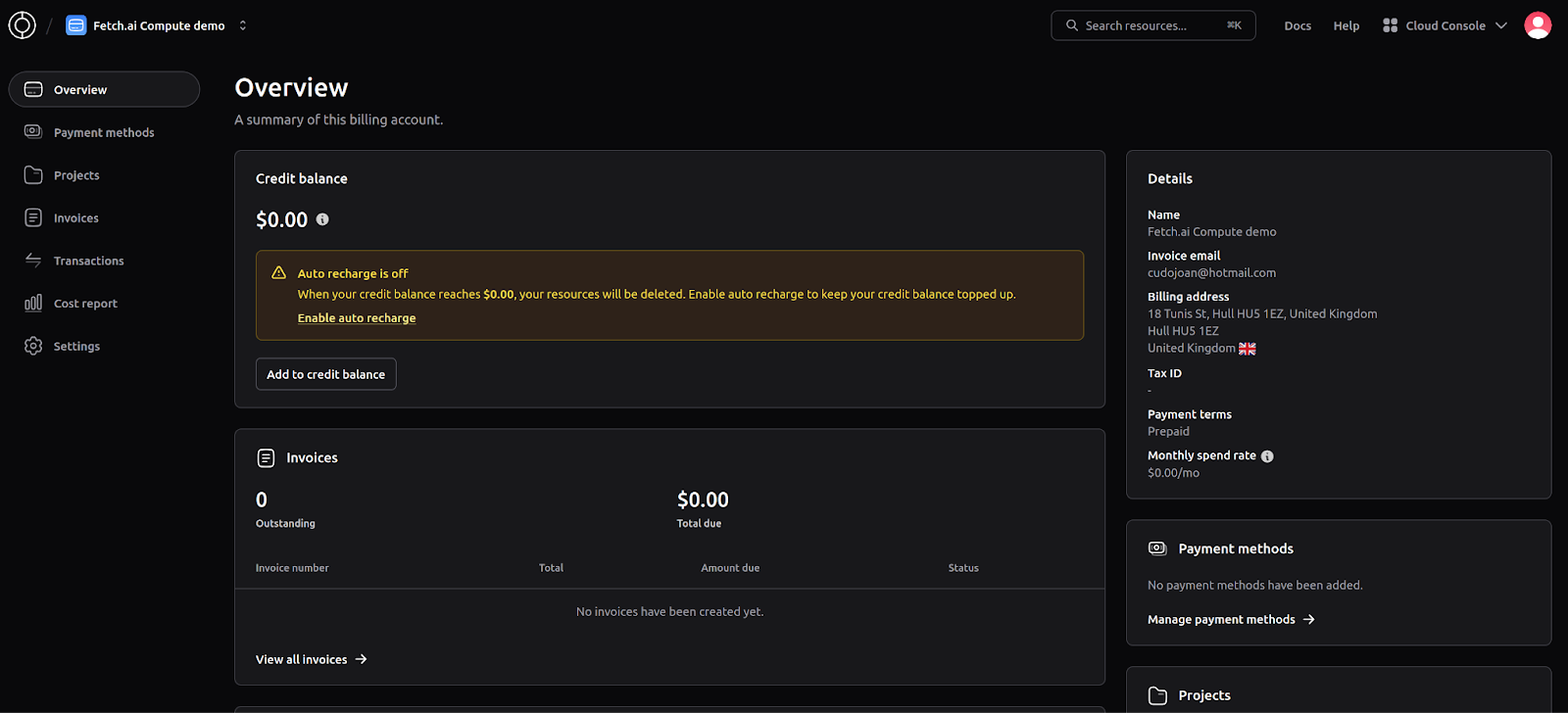 Once that is done, you can start your compute journey. Again, if you have already been awarded a grant from Fetch.ai Compute, please get in touch with us to know when your account will be credited, if you haven’t already been informed. You can reach out to us at onboarding@fetchcompute.ai